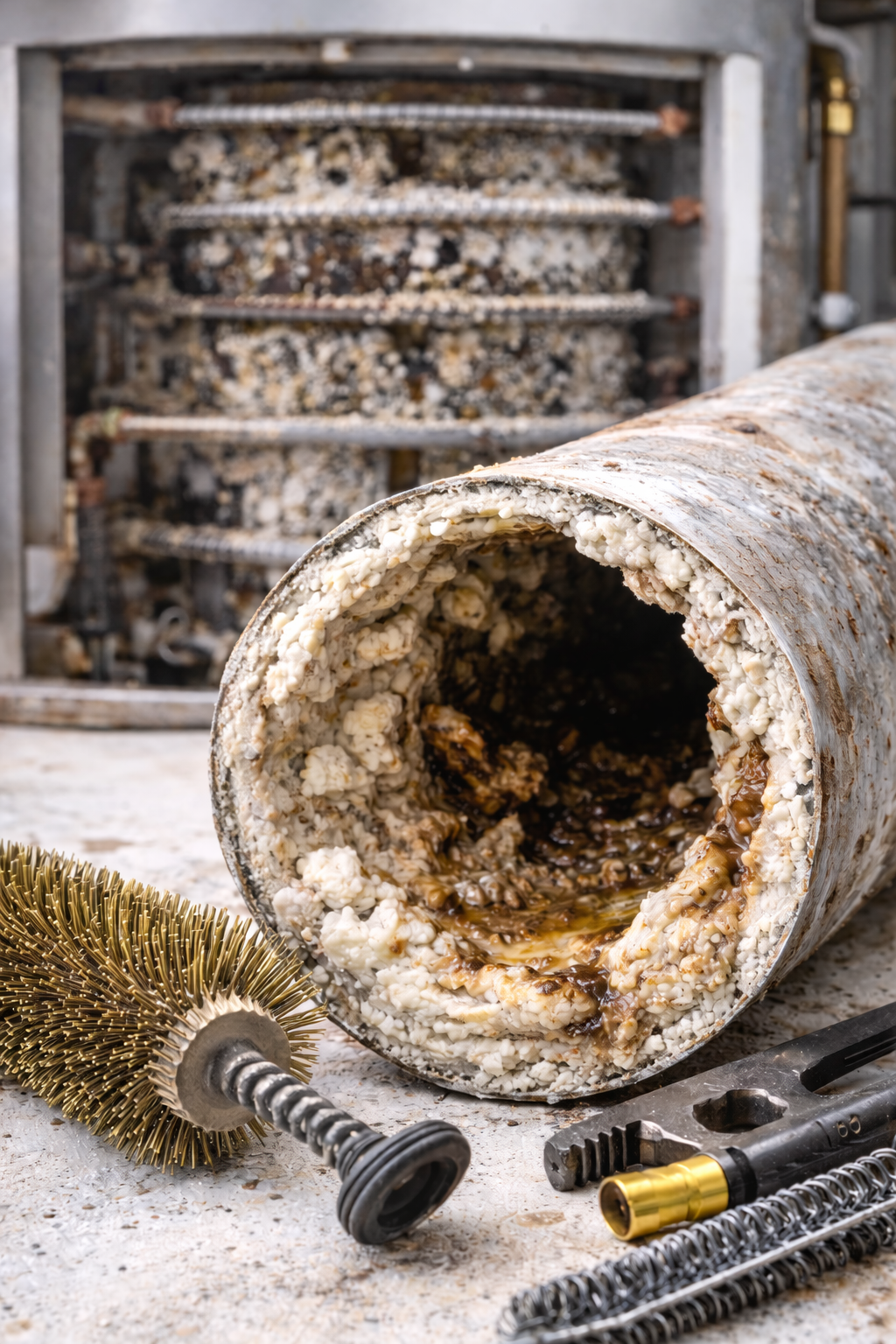 Fachgerechte Entkalkung und Reinigung von Wärmebereitern und Rohrleitungen zur Entfernung von Kalk, Ablagerungen und Betriebsrückständen.